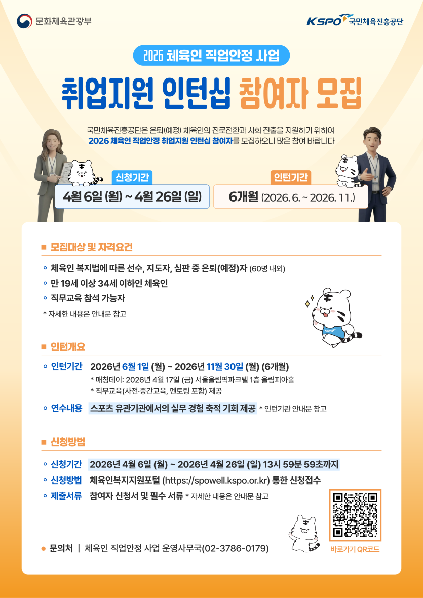2026년 체육인 직업안정 사업(국내 지도자연수·인터십) 참여자 모집 안내